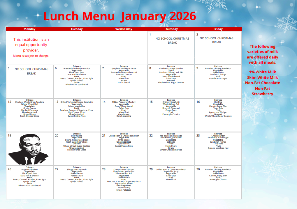 January Cafeteria Menu