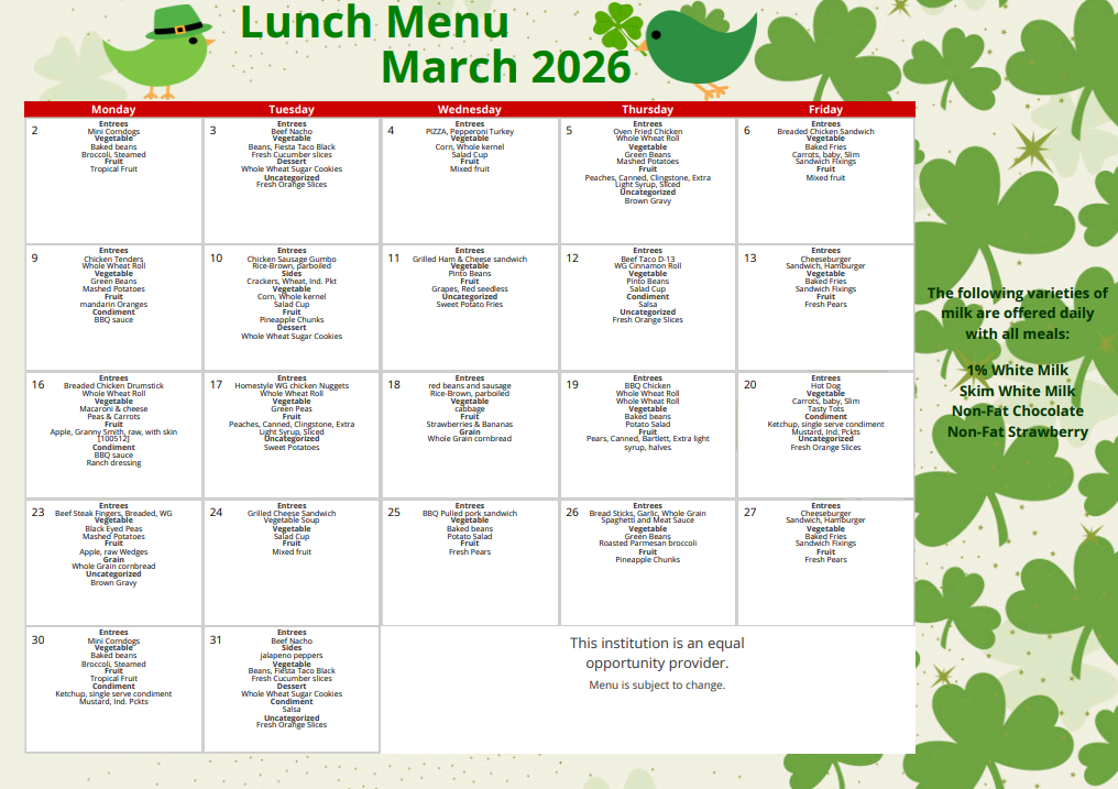 March Menus